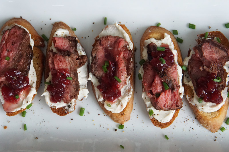 Steak Crostini with Horseradish Spread appetizers are the perfect appetizers with toasted slices of French baguette, tender slices of steak and a rich and spicy horseradish spread. When the plate hits the table, it’s usually the first thing that attracts a crowd. That’s because the promise of a perfectly cooked slice of steak goes past no one.