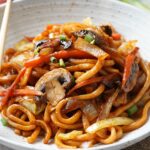 You will savor every bite of this delicious and easy yaki udon with soy sauce, tender-crisp vegetables and chewy udon noodles.