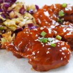 Transfer the chicken to a bowl. Pour on sauce and toss to coat. Serve with sesame seeds and green onions.
